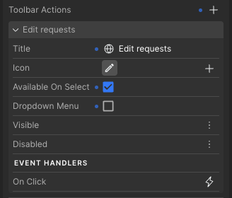 I’ve added a feature request for tooltips on custom toolbar actions, as well as for translating the “selection count” label.